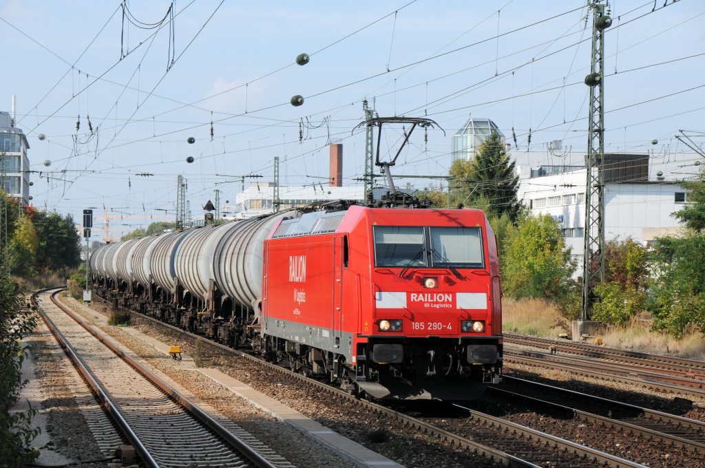 185 601 zieht einen Güterzug durch Karlsruhe-Hagsfeld. Aufgenommen am 28.10.2009