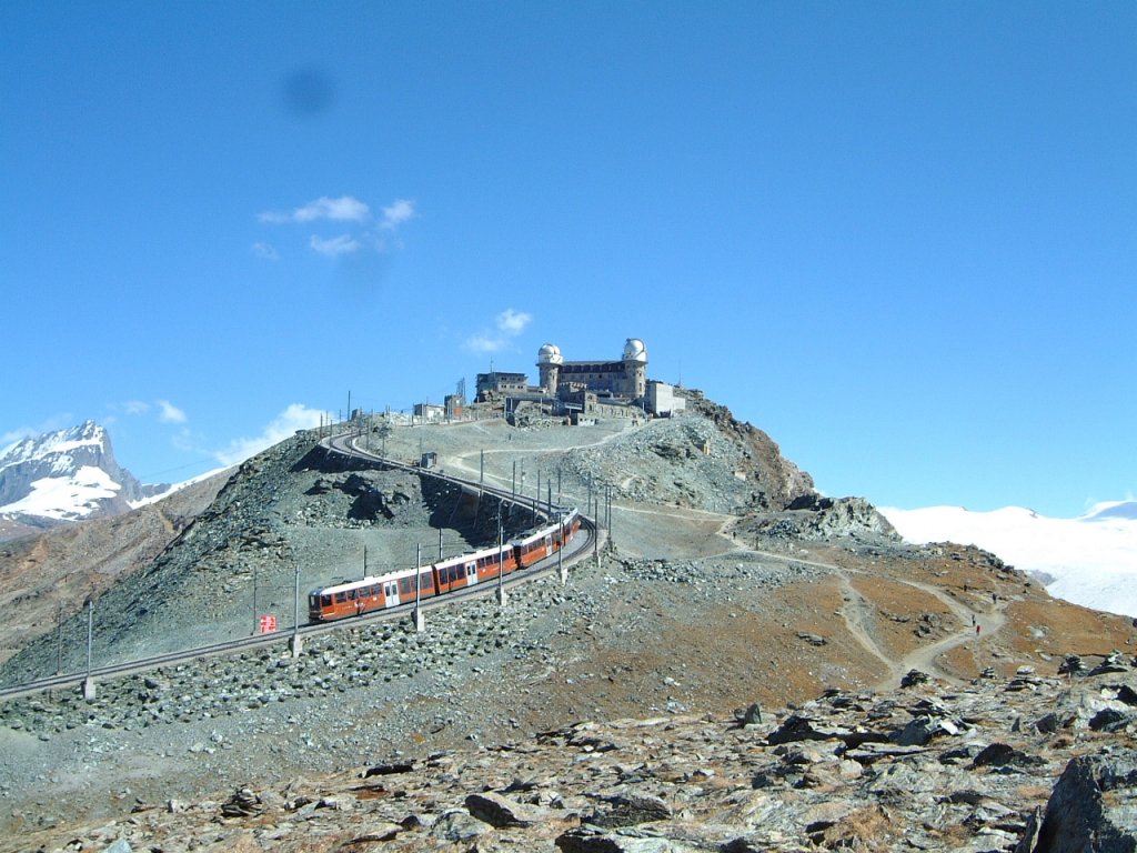 Ein moderner Triebwagenzug der GGB in der Station Riffelalp