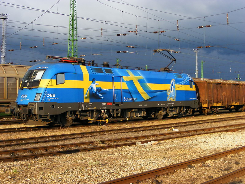 1116.029 "EM-Lok Schweden" wartet am 30.05.2009 im Bahnhof Hegyeshalom (Ungarn).