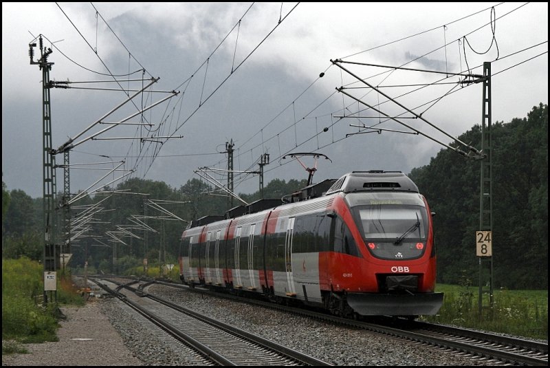 23.7.09 Ein Autoleerzug von Italien nach Tschechien war in den letzten Tagen schwer werbelokanfällig. Gleich 3 mal in 5 Tagen bespannte die Feuerwehrlok diesen Zug. Hier die 1116 250 am 10min verspäteten LGAG 46742 von Tarvisio Boscoverde nach Breclav.