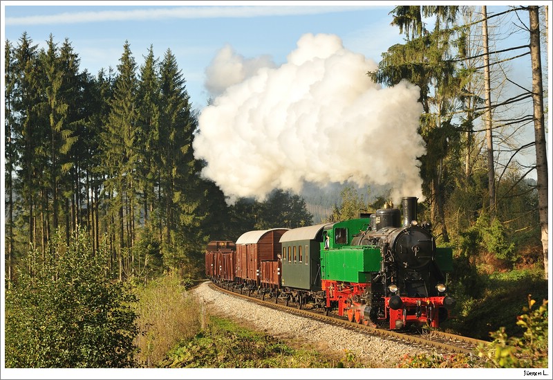 ÖGEG-Dampflok WTK4 (ex. ÖBB 392.2530) fährt auf der Museumsstrecke von Timelkam nach Ampflwang. 4.10.2009.