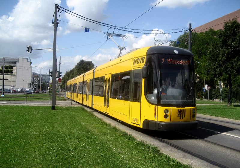 Straßenbahn mit Werbung für Dresdner Musikfestspiele als Linie 8 nach Hellerau am Hauptbahnhof; Dresden, 05.09.2009