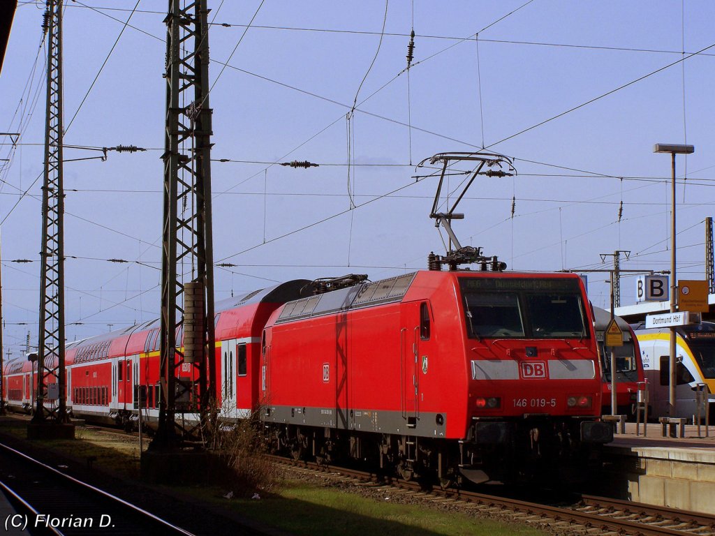 146 019-5 als Schublok des RE(4318) von Minden(Westf) nach Düsseldorf hier im Dortmunder Hbf. 02.04.2010