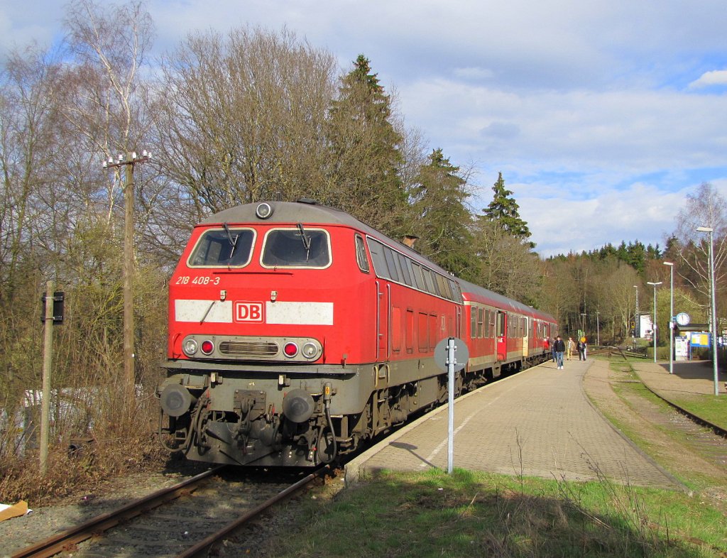 DB 218 408-3 mit der RB 12636 aus Boppard Hbf, im Bf Emmelshausen; 02.04.2010