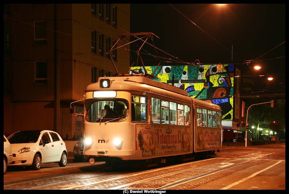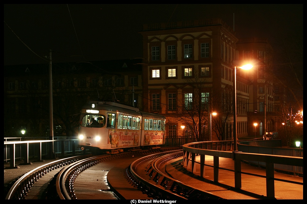 Der Wagen 125 in der Nacht vom 27.03. auf den 28.03.10. auf der Kurt-Schumacher-Brücke, die Ludwigshafen mit Mannheim und damit Rheinland-Pfalz mit Baden-Württemberg verbindet.