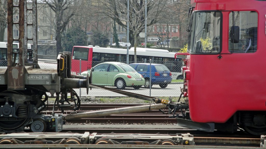 Be 4/6 2061 und Be 2/4 2421 am 1.4.10 beim Bahnhof Tiefenbrunnen