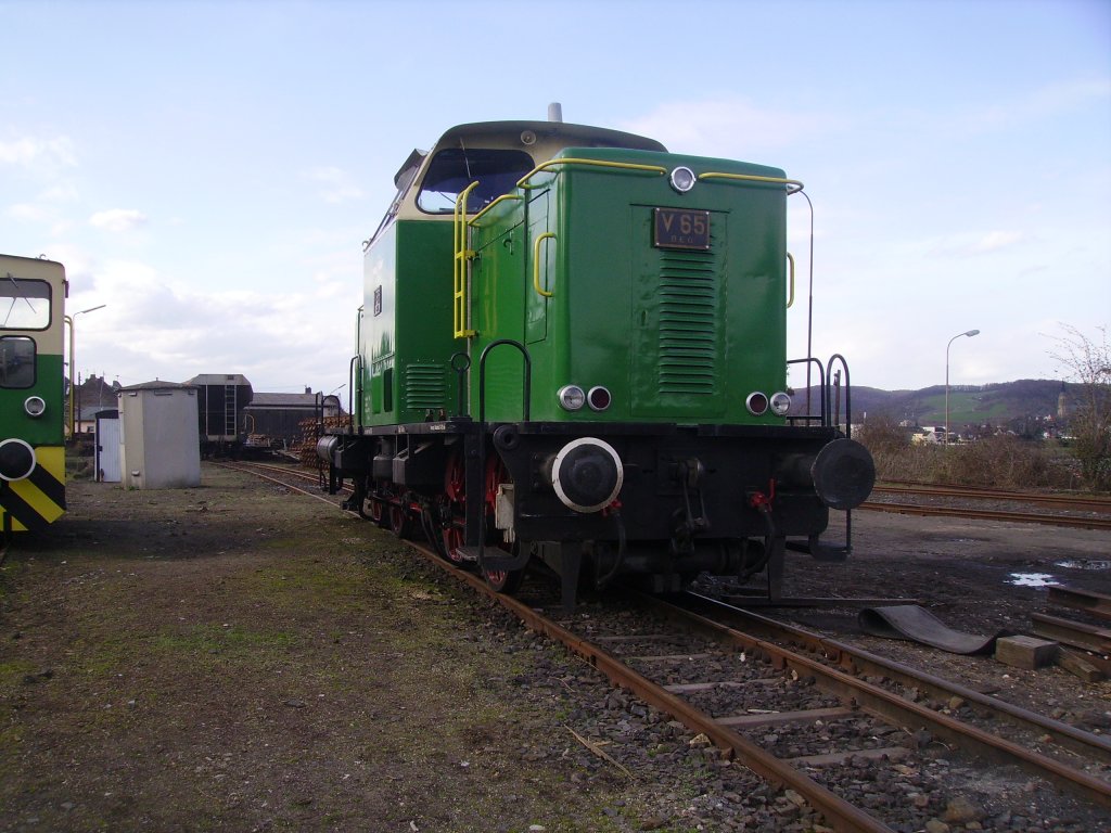 Lok V65 der Brohltalbahn steht im Güterbahnhof Brohl am 2.4.10