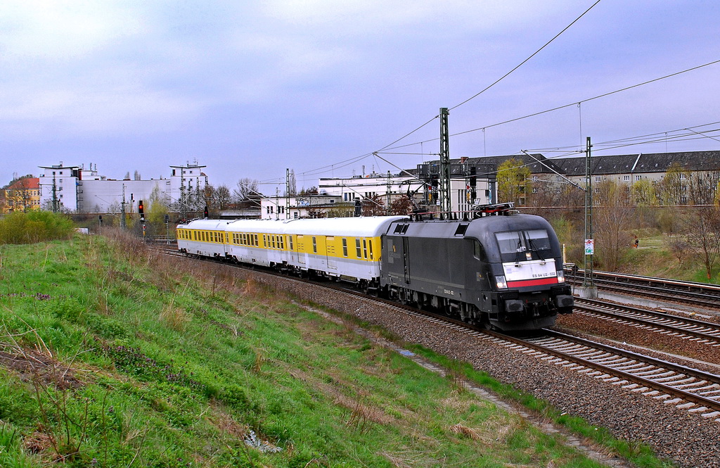 MRCE 182 032 am 15.04.2010 mit Messzug am Berliner Nordkreuz in Berlin-Pankow auf dem Weg nach Rostock