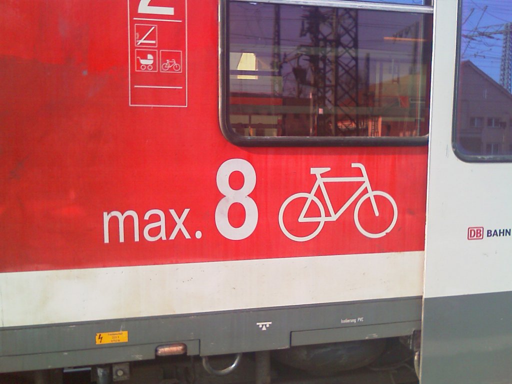Bisher in einer solchen Aufschrift nur im Großraum Fulda/Gießen zu Gesicht bekommen. Maximale Mitnahme von Fahrrädern am 628 437 am 02.04.2010 in Fulda.