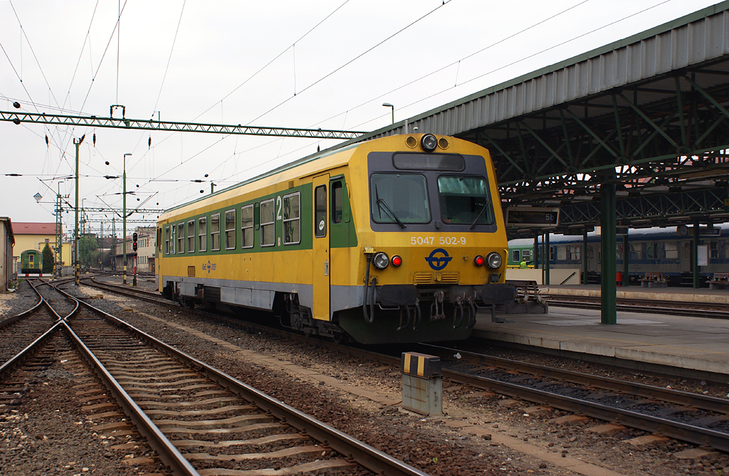 5047 502 der ROeEE/GySEV wartet am Bahnsteig 7b auf die Abfahrt nach Wiener Neustadt Hbf. Sopron, 23.04.2010