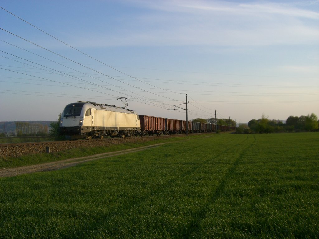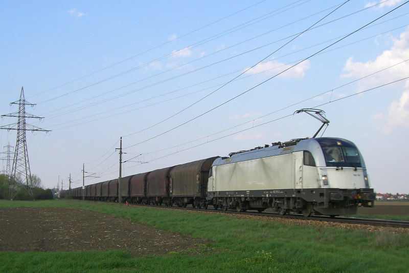 Am 21.4.10 bespannte die Siemens-Vorführlok 183.701 den wegen der Sperre der Summerauer Bahn umgeleiteten SLGAG 46181 von Breclav nach Linz Stahlwerke. Heute hatte der Zug statt Eaos Stahlwagen eingereiht. Fotografiert wurde der Zug genau bei einer Fotowolke nach der Ausfahrt aus Tulln Stadt.