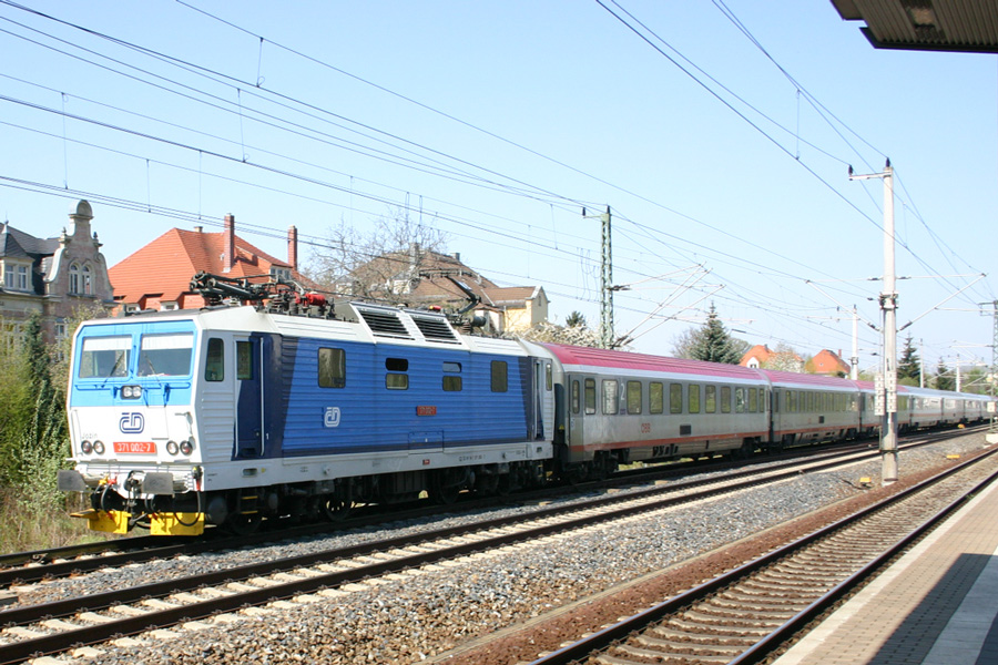 CD 372 002-7 mit EuroCity in Richtung Prag durchfährt Dresden-Niedersedlitz, 23.04.2010