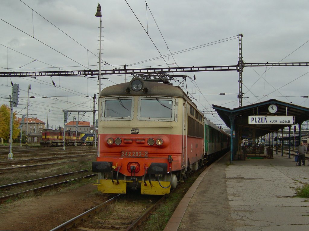 17.4.10 Alltäglicher Fernverkehr auf der Nordbahn. Heute bespannte die 1216 238, welche schon lang kein Wasser mehr gesehen hat, den EC 75 "Franz Schubert" von Praha Holesovice nach Wr. Neustadt bei Tallesbrunn.