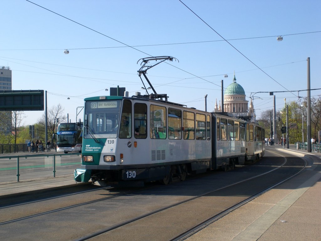 Potsdam: Straßenbahnlinie 93 nach Bahnhof Rehbrücke an der Haltestelle Lange Brücke.(18.4.2010)