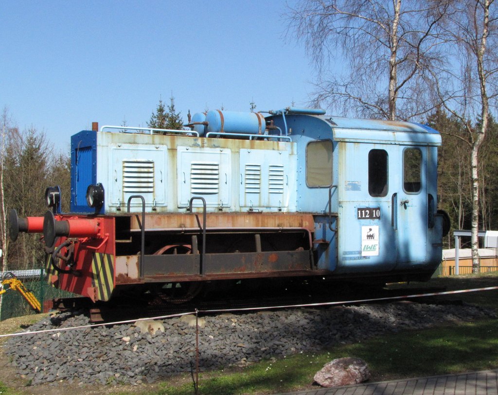 LWE 112 10 der Lichtenhainer Waldeisenbahn vom Typ N4 b als Denkmallok neben dem Bf Lichtenhain an der Bergbahn; 18.04.2010
