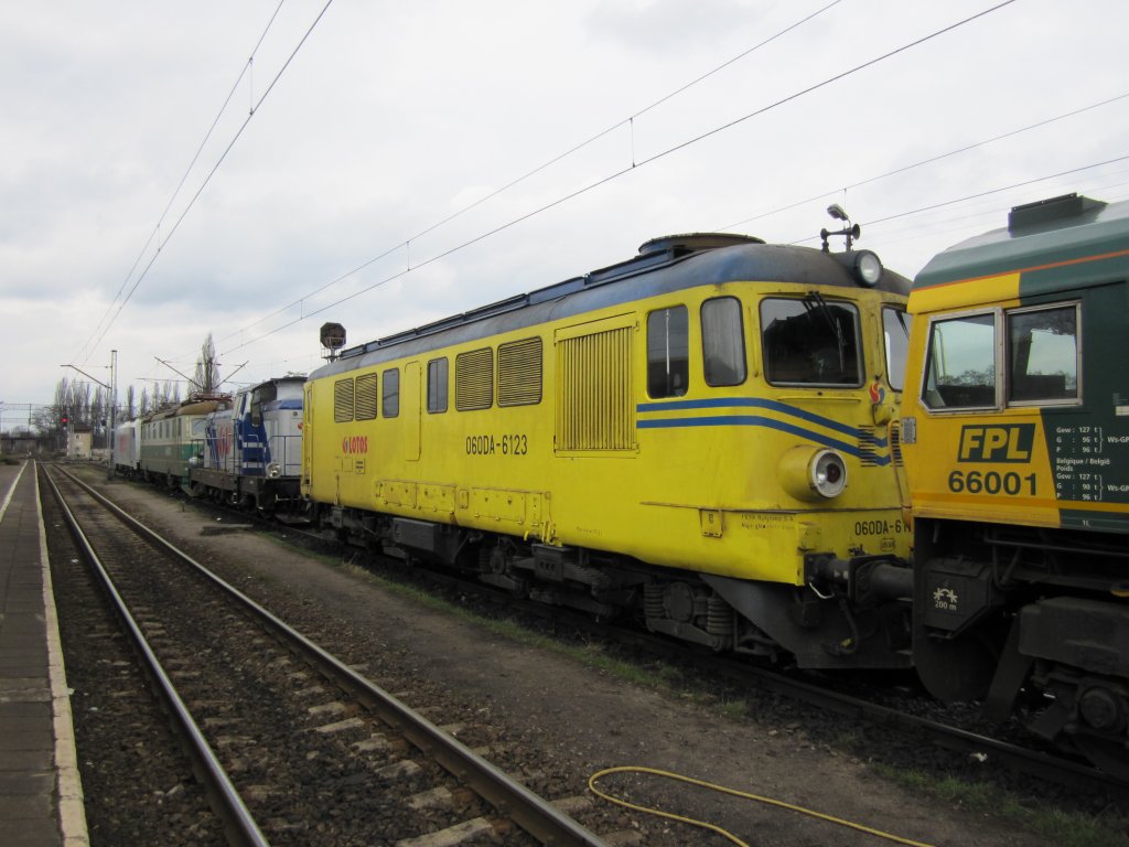 Im Bahnhof Coswig kam es am 27.03.2010 zum Treffen von MEG 701 und 145 078.