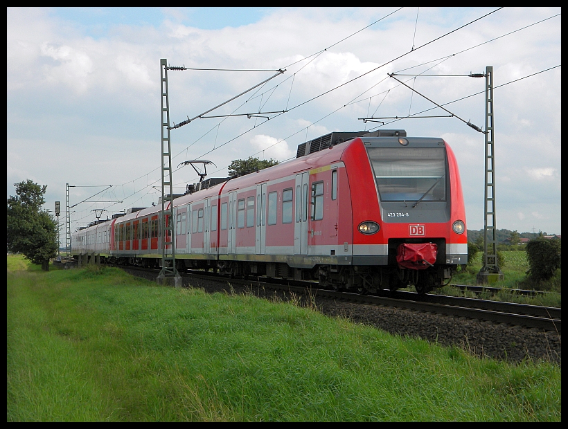 S-Bahnzug 29735 läßt die Gewittertürme hinter sich. Helmahof, am 11.08.2010.