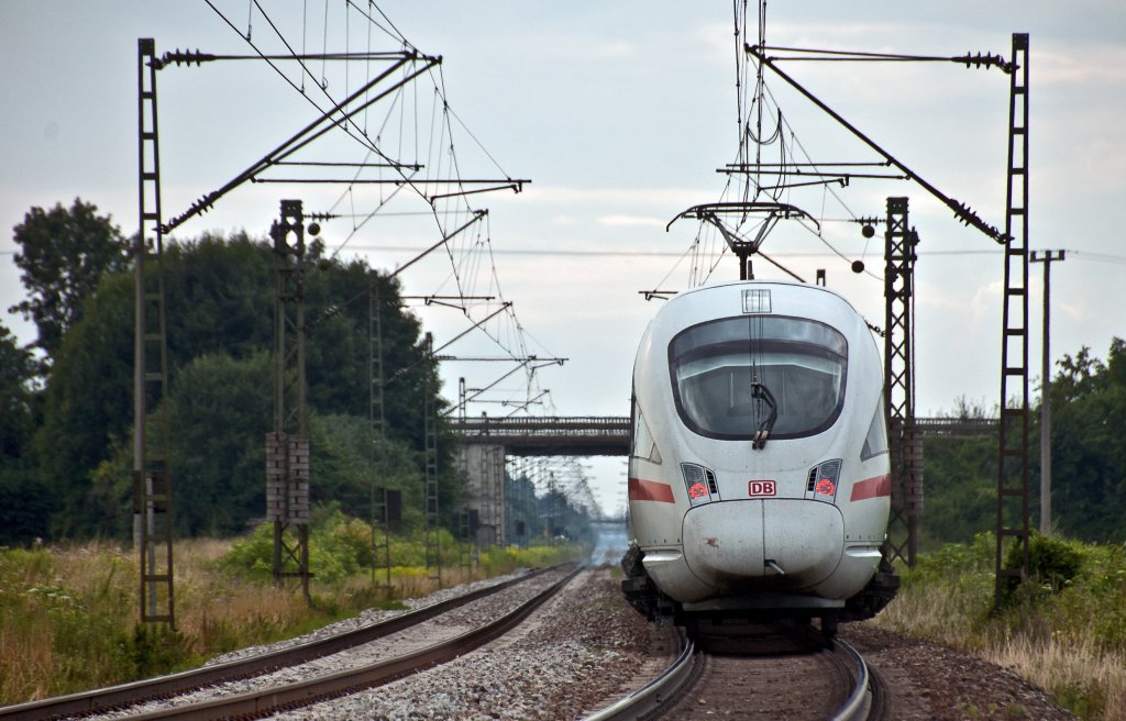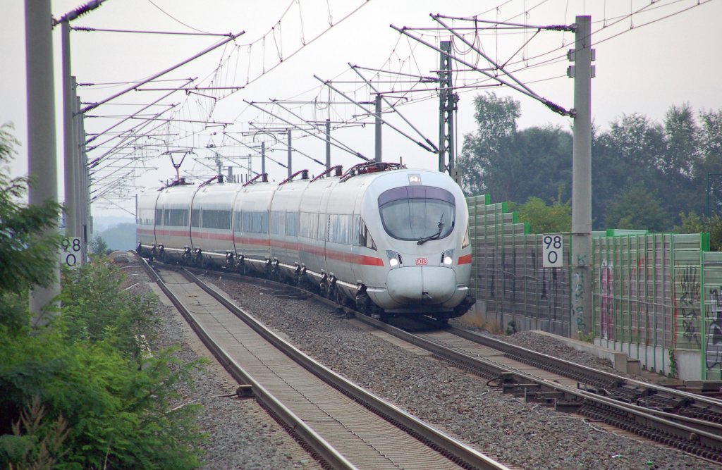 Ein ICE-T der BR 411 wechselt am 12.08.10 kurz vor Pratau die Seite um eine vorrausfahrende RB zu überholen.