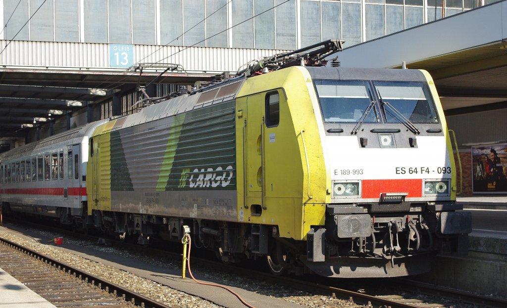 189 993 (ES 64 F4-093) bespannte am 14.07.2010 einen IC und wartet im Münchener Hbf auf Abfahrt.