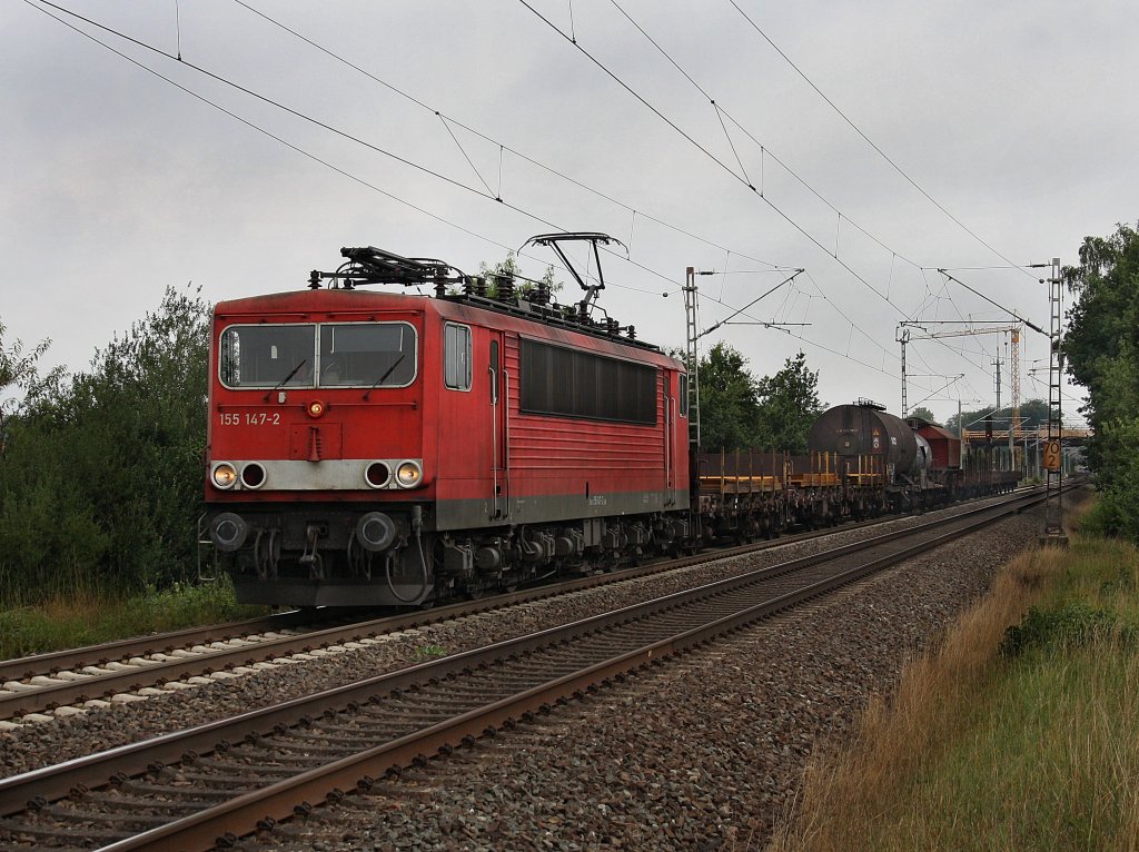 Die 155 147 am 11.08.2010 mit einem Güterzug unterwegs bei Eystrup.
