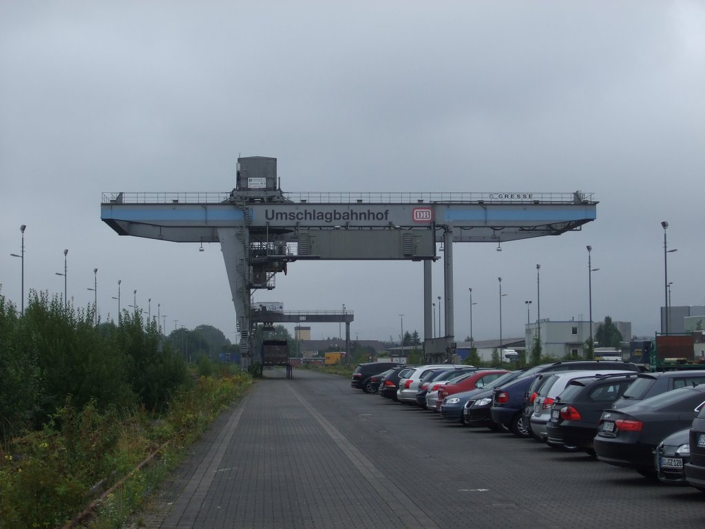 Der ehemalige Umschlagbahnhof in Bielefeld Ost. Heute befindet sich auf dem Gelände eine Holzfabrik. Nur die zugewachsenen Gleise und ein Containerkran erinnern an die alte Zeit. Das Gelände ist offen zugänglich! Aufgenommen am 17.08.2010.
