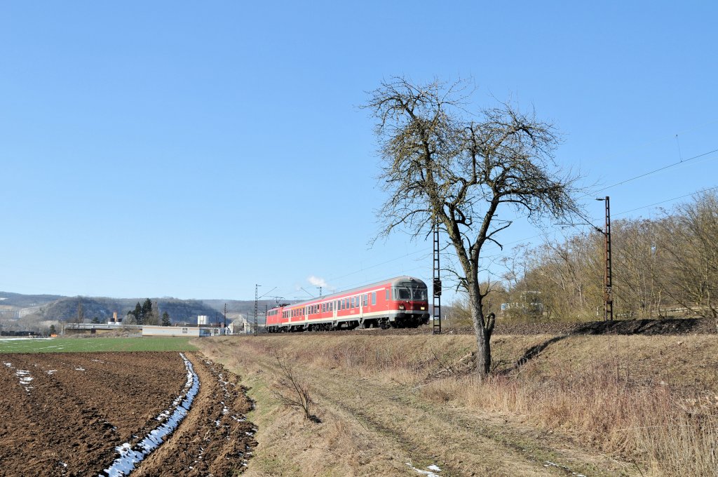 Den krönenden Abschluss des 08. Mai 2010 bildete die Karlsruher 218 478, die mit herrlichem TB 11-Sound und dem RE 28886 von Karlsruhe nach Neustadt (Weinstraße) am Haken im Abendlicht in voller Fahrt in Richtung Zielbahnhof dröhnte. Die Aufnahme entstand nahe der Ortschaft Edesheim, dessen Haltepunkt der Zug in Kürze durchfahren wird.