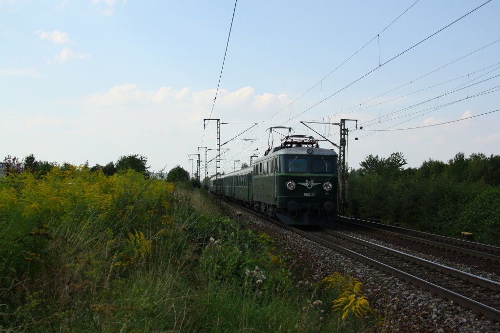 Die 1010.10 war am 22.08.2010 mit einem Sonderzug zurück vom Dampffestivial aus Nürnberg unterwegs. Natürlich war auch zum Zug die Sonne weg. (Obertraubling)