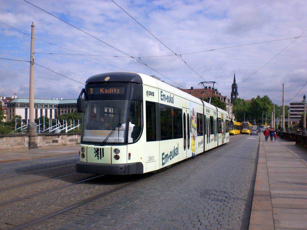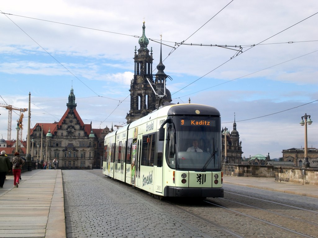 Dresden: Straßenbahnlinie 9 nach Kaditz Riegelplatz nahe der Haltestelle Theaterplatz.(18.8.2010)