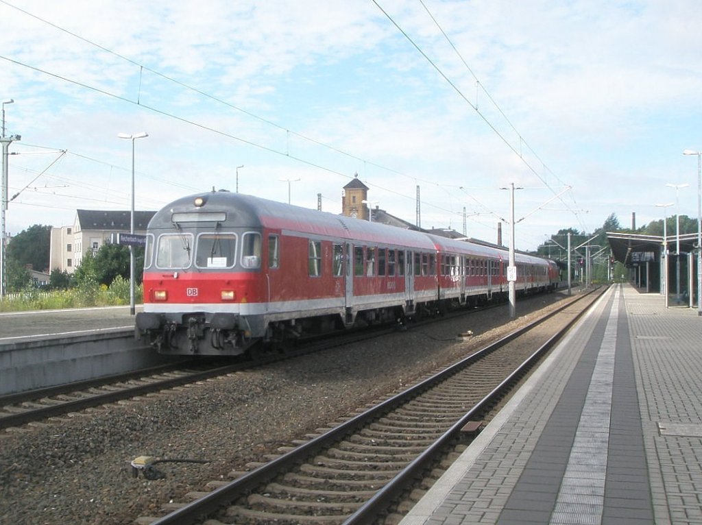 Drei DPZ mit der Re 450 050-0 an der Spitze machen sich am 6.8.10 auf den langen Weg nach Pfäffikon SZ. Aufgenommen bei Eglisau.