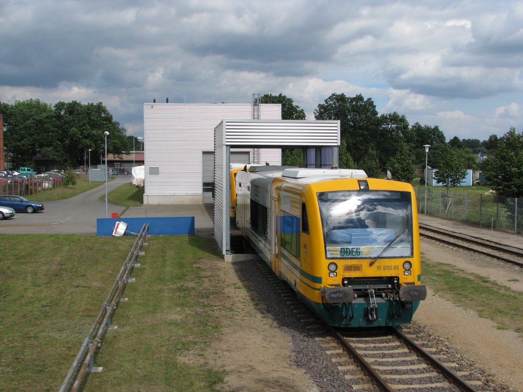Personenzug SDG 1001 fährt aus Cranzahl kommend in den Neudorfer Haltepunkt Vierenstrasse ein. (13.06.2010)