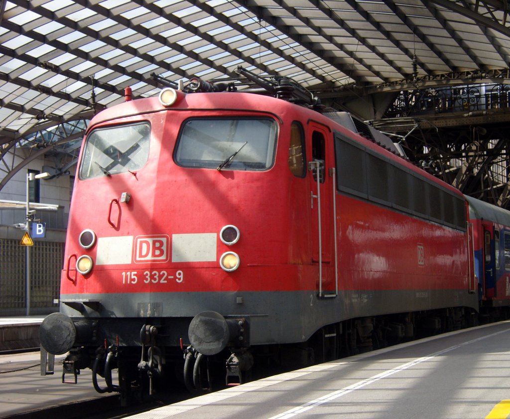 Die 115 332-9 fuhr am 24.08.2010 mit einem IC aus Köln Messe/Deutz aus.