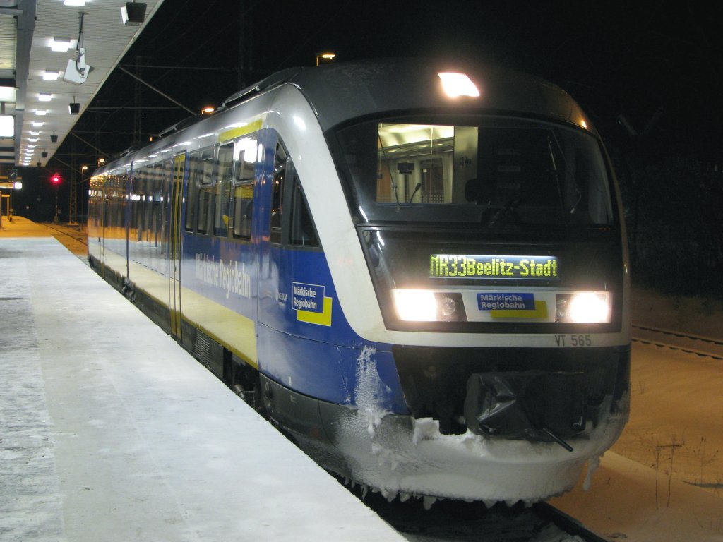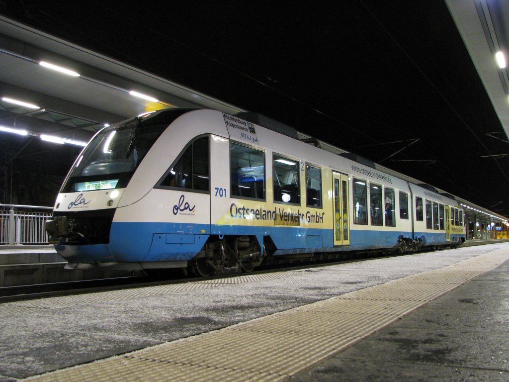 VT 705 der Ostseeland Verkehr GmbH im Bahnhof von Parchim kurz vor der Abfahrt nach Gadebusch am 12.12.2009