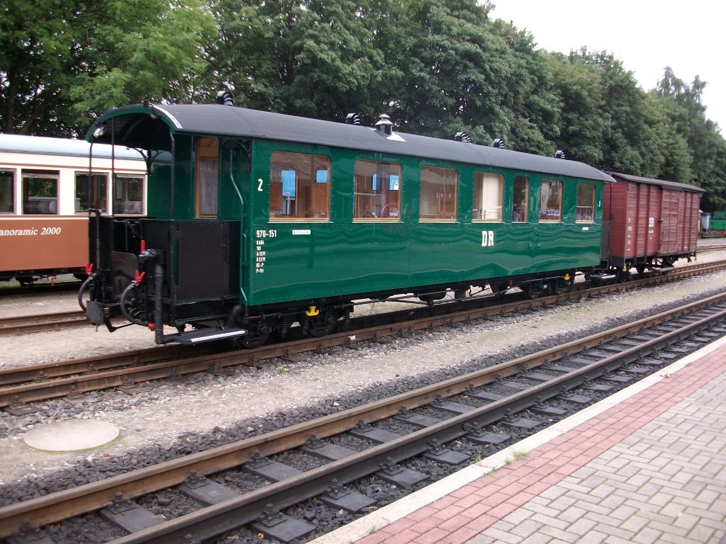 Neuzugang beim Rasenden Roland ist dieser 1/2.Klasse Wagen KAB4 970-151.Am 26.August 2010 stand der Wagen abgestellt in Putbus.