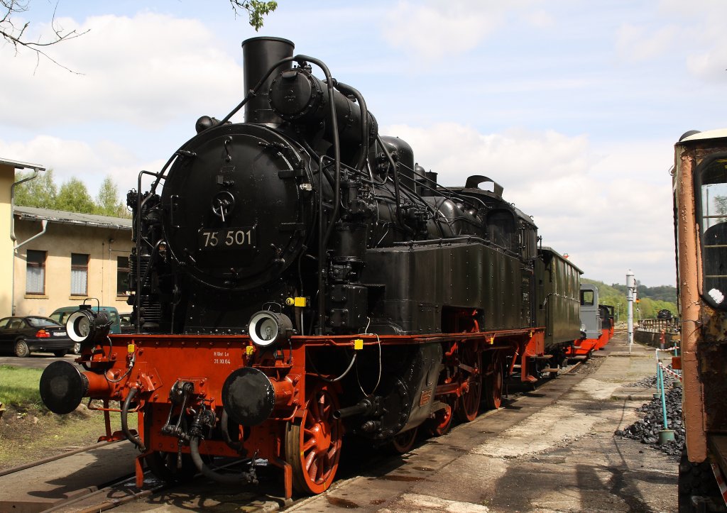 75 501 stand bei den Schwarzenberger Eisenbahntagen auf den Gleisen an der Bekohlung.(16.05.2010)