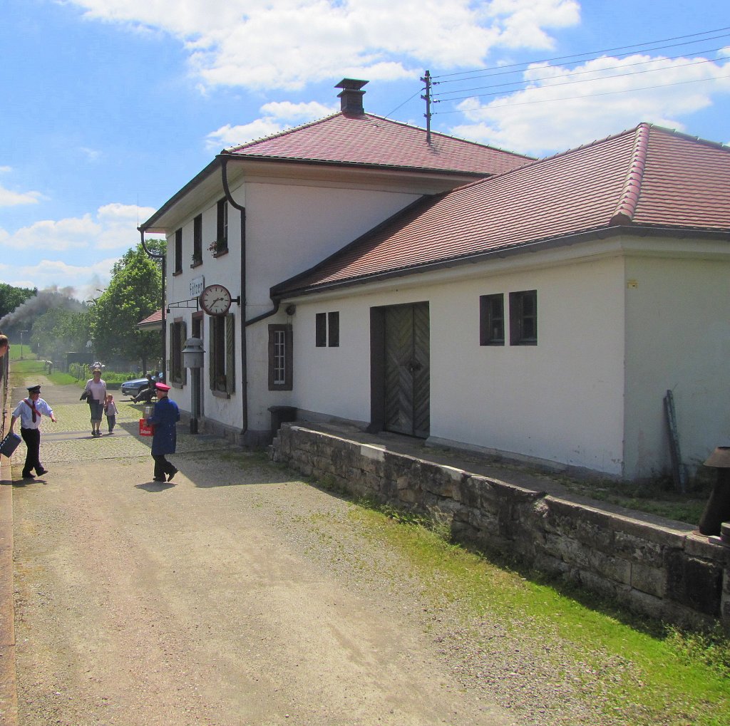 Das Bahnhofsgebäude und der Bahnhofsvorsteher in Fützen; 23.06.2010