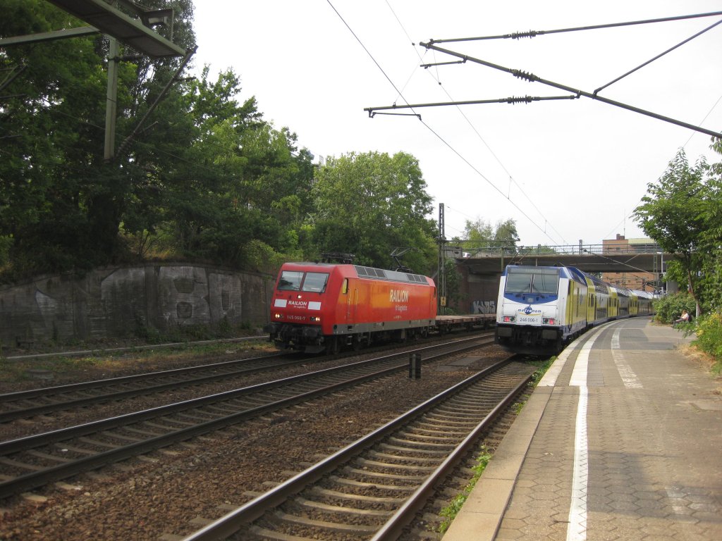 Und die 2. Kasten 110er ! 110 236-7 mit einem Intercity, während sich von hinten 185 603 der HGK mit einem Sonderzug näherte.Düsseldorf Oberbilk am 18.07.2010