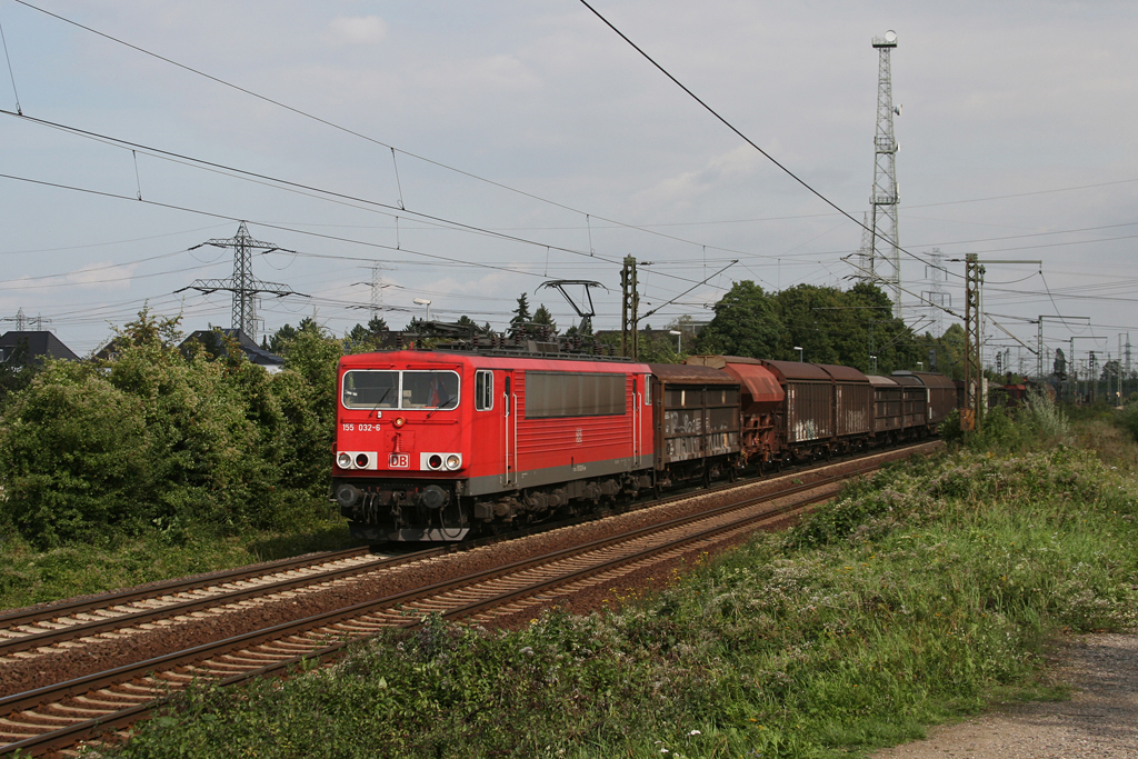 155 032 mit einem gemischten Güterzug am 25.08.2010 in Hannover-Ahlten.