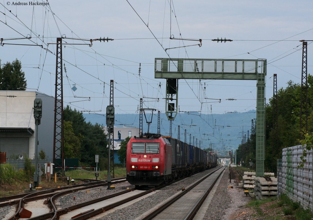 Railpool 186 105 als Tfzf in der Überholung in Frankfurt(Main)West in Richtung Gießen. 25.08.10