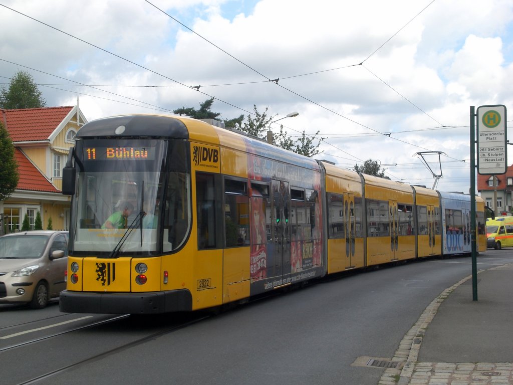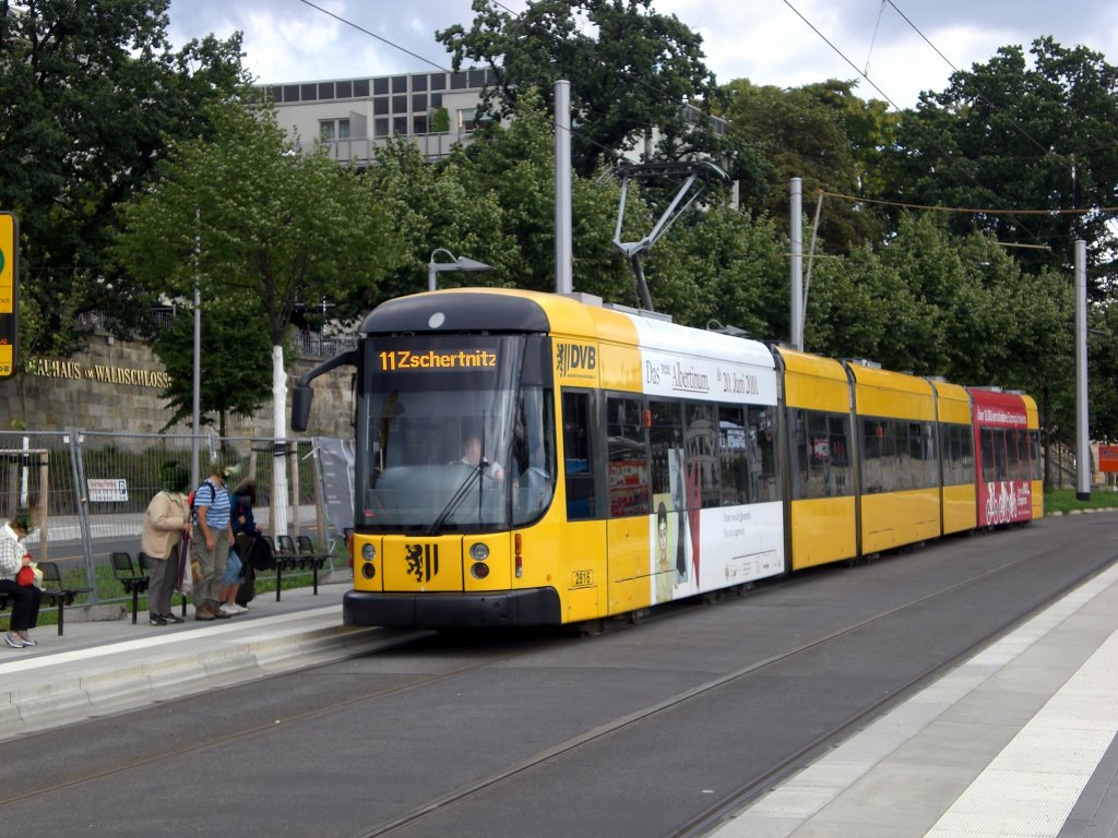 Dresden: Straßenbahnlinie 11 nach Zschertnizt an der Haltestelle Radeberger Vorstadt Waldschlößchen.(18.8.2010)