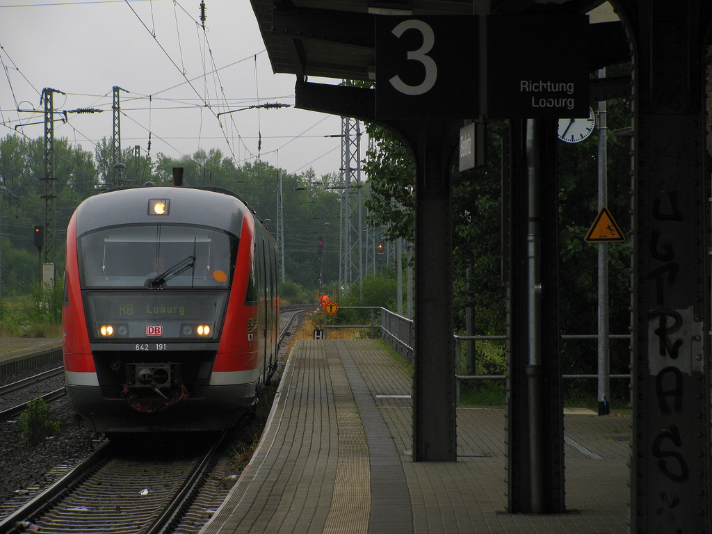 Am 09.08. ging es mit Rolf und Frank auf Tour von Berlin gen Magdeburg. Erster Halt Biederitz. Es fährt ein die 10 Minuten verspätete RB nach Loburg.