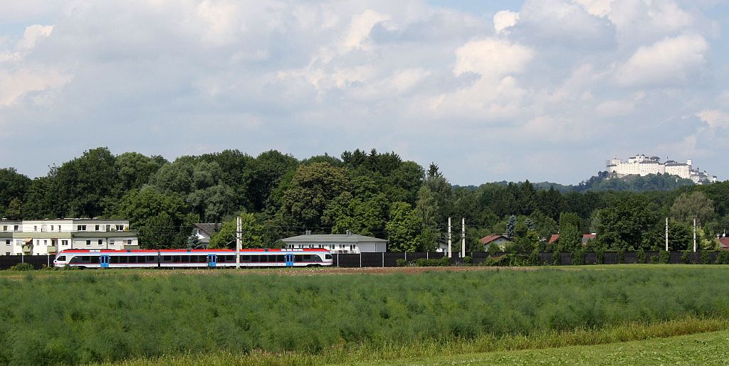 ET 131 der BLB fährt hier als S3 an der Salzburger Stadtgrenze Richtung Golling-Abtenau. 4.8.10