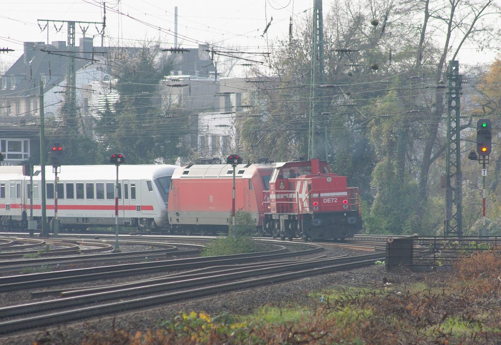Da Braucht der IC Schubhilfe! Nein, kleiner Scherz, auch wenn es auf den ersten Blick so aussieht, als schiebe die MAK der HGK den IC an, handelt es sich tatsächlich um eine Zugbegegnung. Aufgenommen am 20.11.2010 in Köln West.