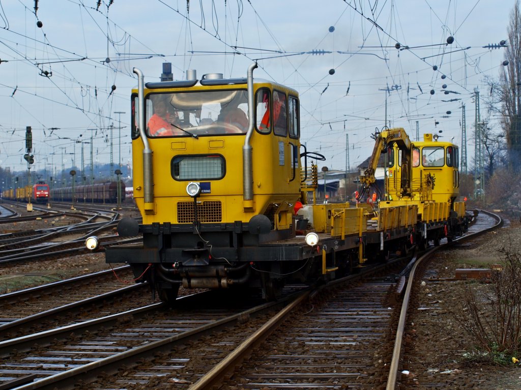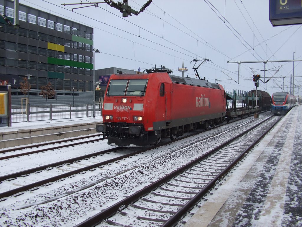 In Aachen West ist am 13.12.2010 bei 4 Grad minus alles komplett auf Winter eingestellt. Vorne ein Gerät zum aufwärmen der Schienen mit Hilfe von Gasbrennern, die abgestellten 185er haben die Bügel am Draht und selbst die Pkw`s auf dem Autozug sind in einer wärmenden Folie eingepackt.
