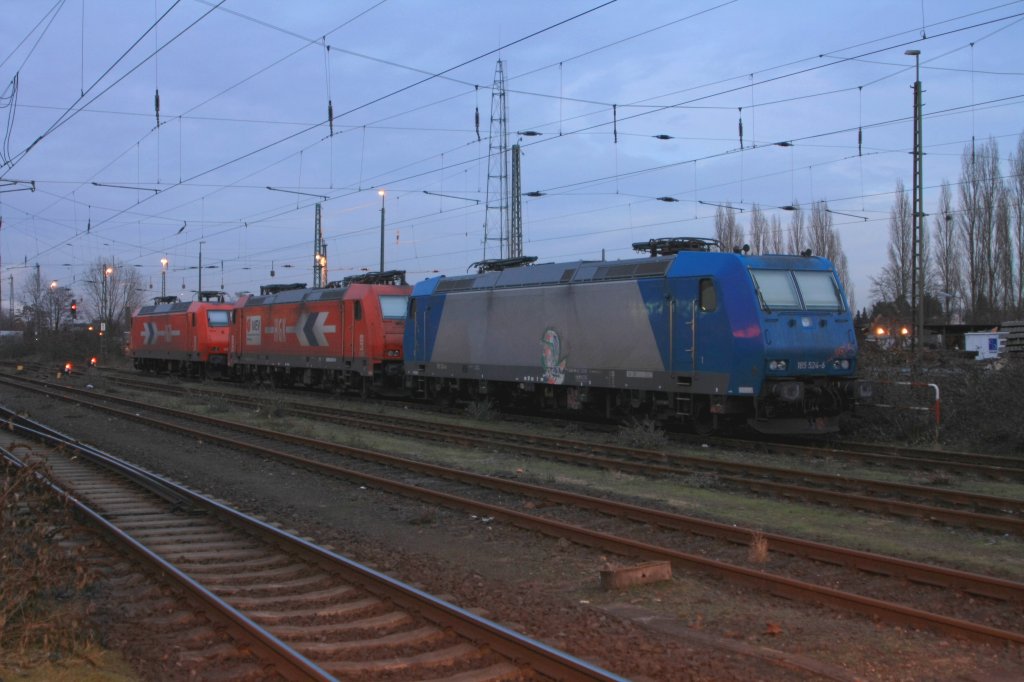 185 524, HGK 2055 und eine 145 von HGK am 13.12.10 in Krefeld.