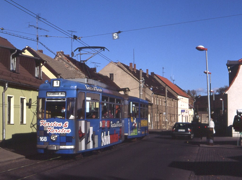 Tw 168 + Bw 265, 28.10.1997, Kirchmöser Genthiner Straße.
