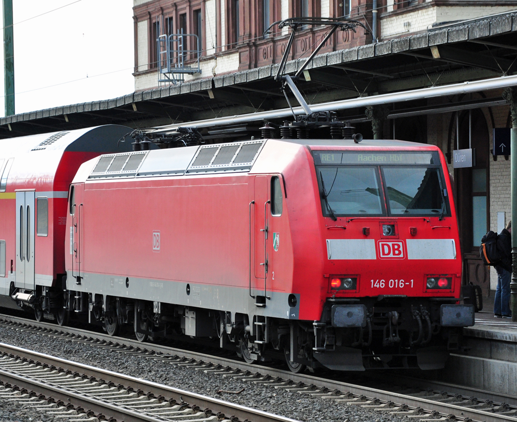 146 016-1 als Schublok für RE1 nach Aachen im Bf Düren - 27.11.2010