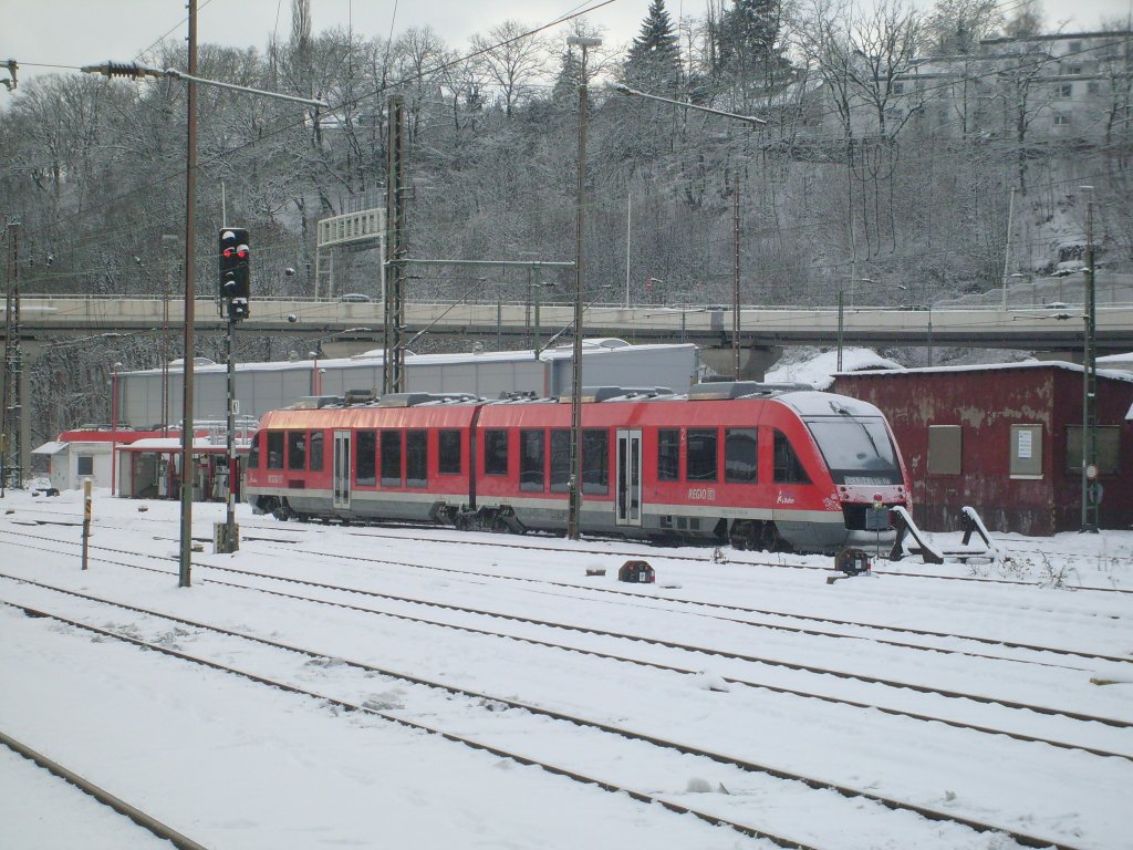 Hier mal neu neben alt am 18.12. in Siegen. Ein 648er neben einem alten Mitteleinstiegswagen.