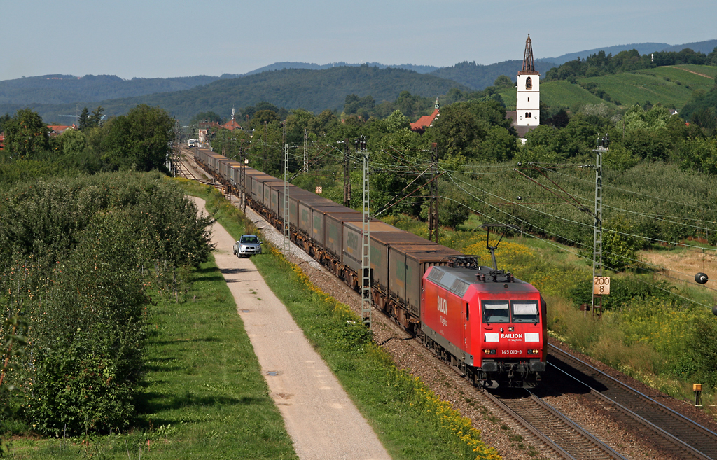 Am 07. August passiert 145 013 mit einem Ambrogio-KV das bekannte Motiv bei Denzlingen, zwischen Offenburg und Freiburg.