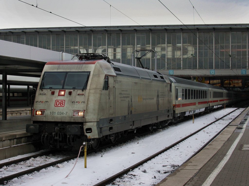 Die 101 034 am 28.12.2010 mit einem EC nach Graz im Münchner Hbf.