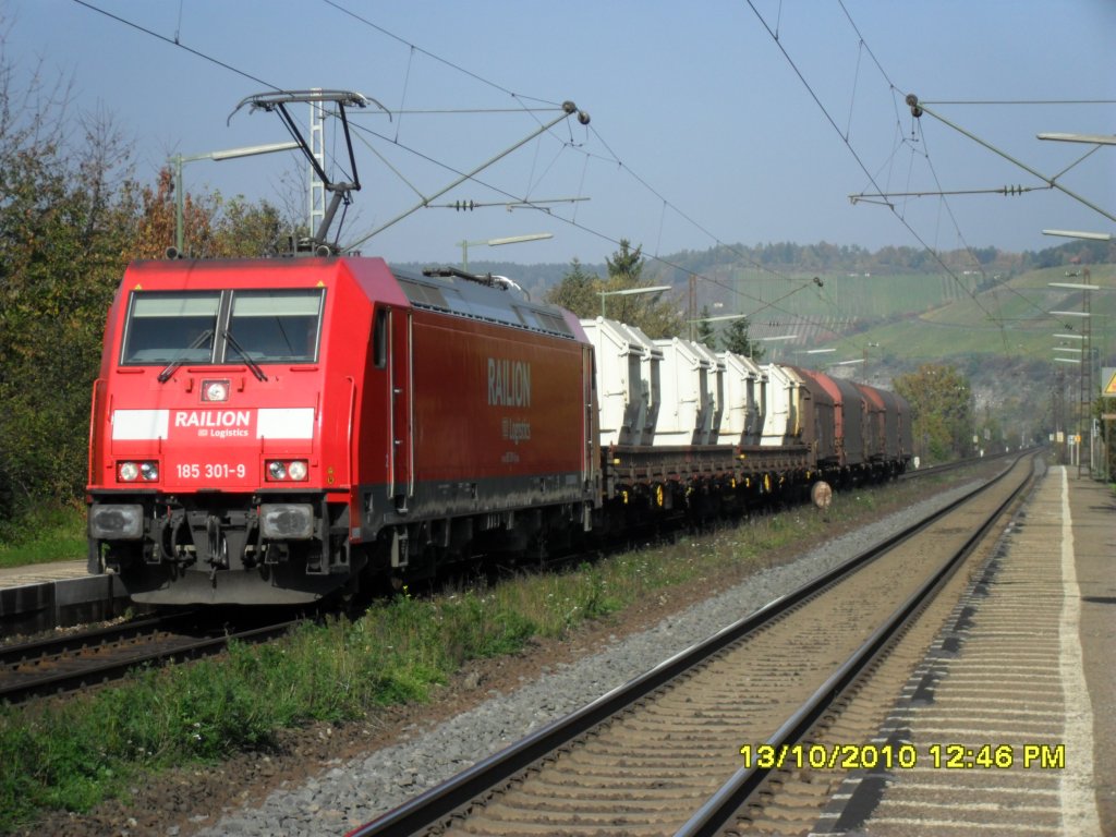 Die 185 301-9 durchfuhr mit einem gemischten Güterzug den Bahnhof Himmelstadt